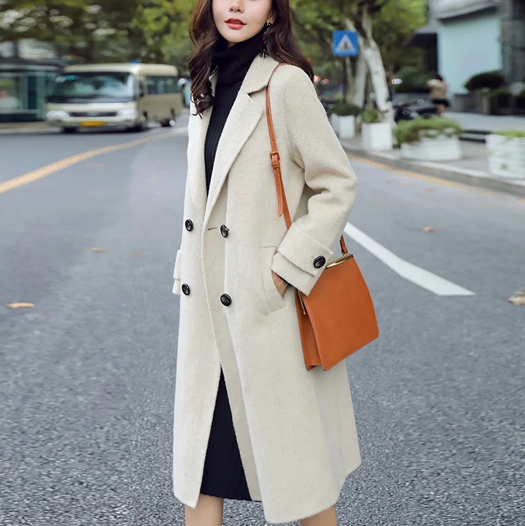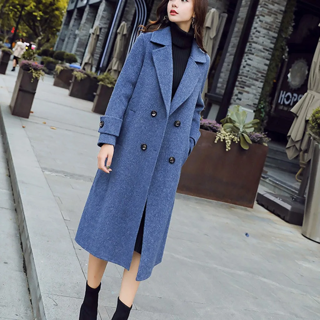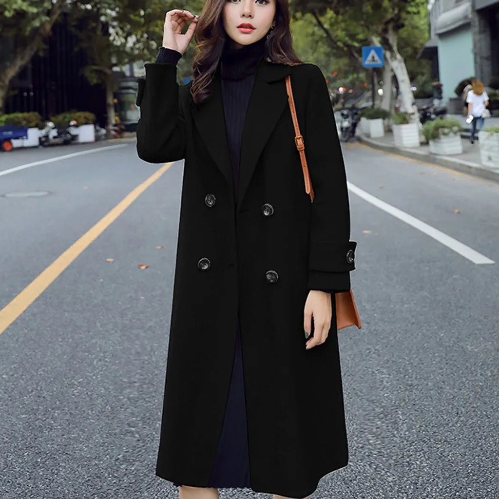 Для женщин однотонные рабочие Винтаж зимняя обувь для офиса с длинным рукавом пуговица шерстяное пальто