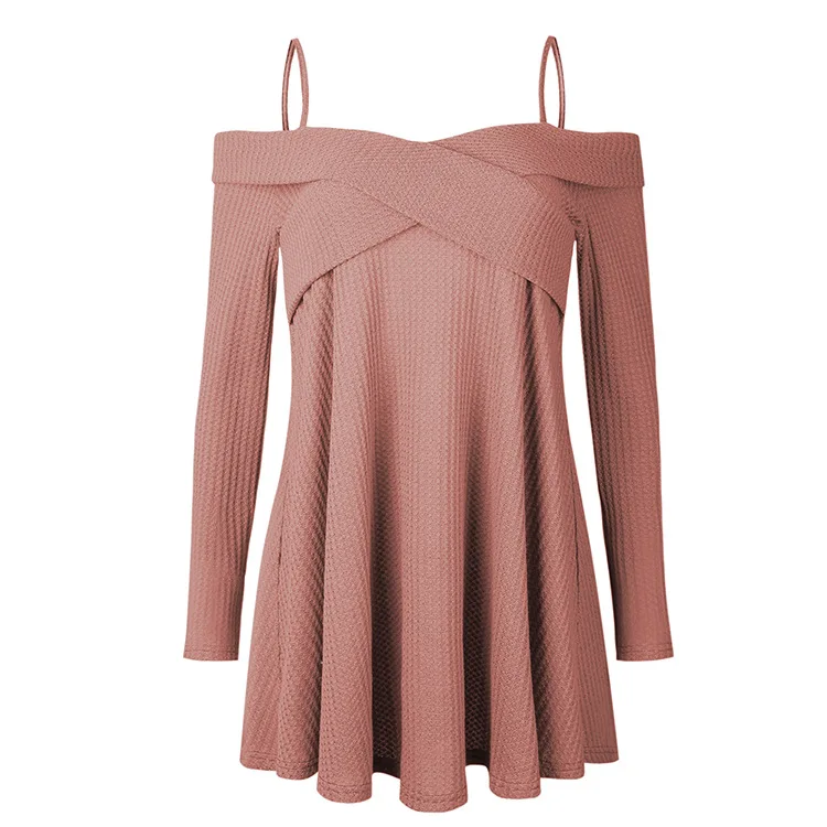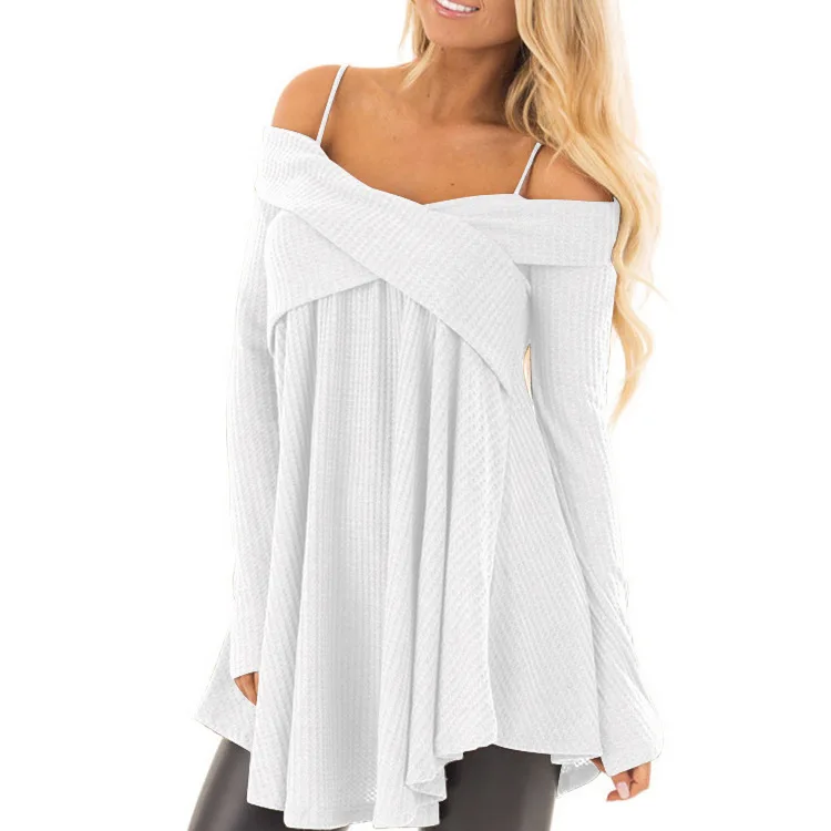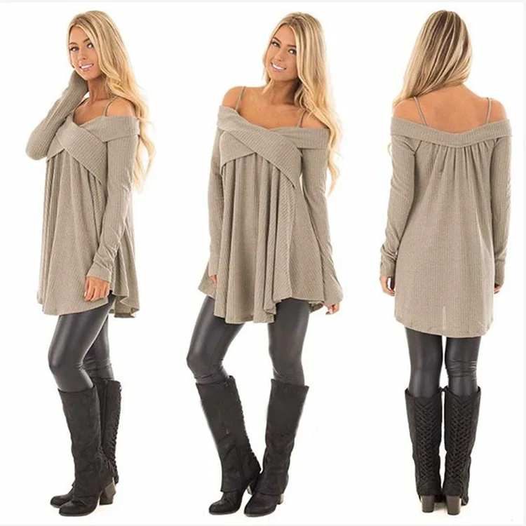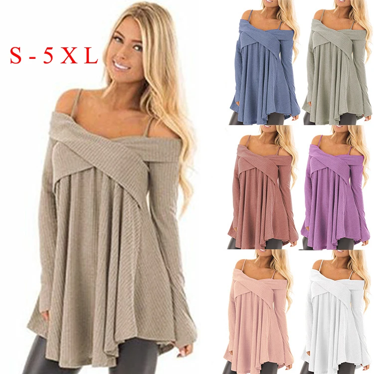 Wisalo плюс размер женский открытый плечо крест-накрест Туника Свитер Slash шеи с длинным рукавом Длинные