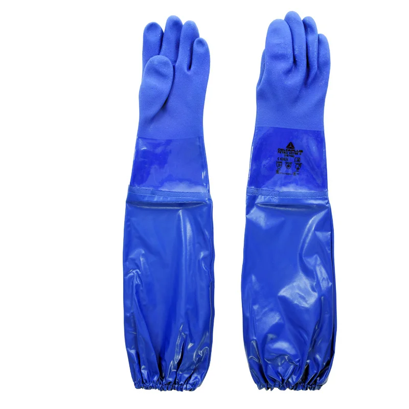 Удлиненные ПВХ рабочие перчатки для водонепроницаемых кислот/щелочей/химических и маслостойких синих вулканизированных защитных перчаток