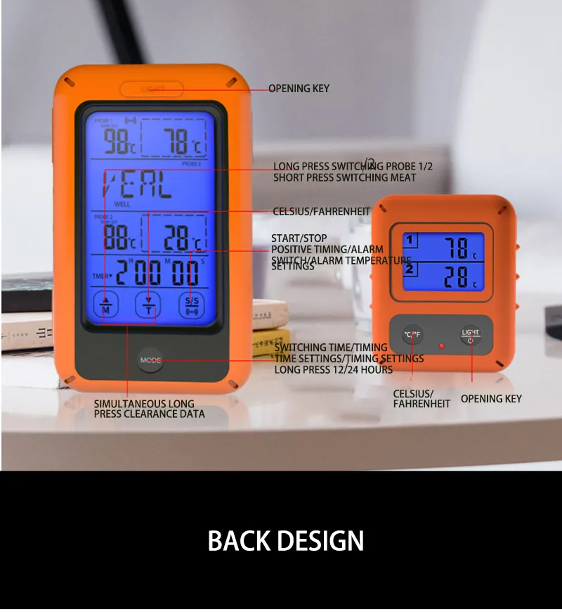 - Тип 3:Барбекю двухканальный кухонный сенсорный Гриль Термометр