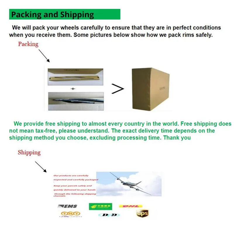 Примечание:Время доставки зависит от времени таможенного оформления покупателя или форс-мажорных обстоятельств. Если покупатель не получил товар в течение длительного времени, я надеюсь, что покупатель может связаться с вашей таможней или местной почтовой службой, чтобы получить товар как можно скорее. Если вы обнаружите, что продукт раздавлен, поврежден или поцарапан при получении товара, пожалуйста, попросите почтовое отделение выдать сертификат повреждения как можно скорее, чтобы вы могли получить компенсацию, спасибо.
