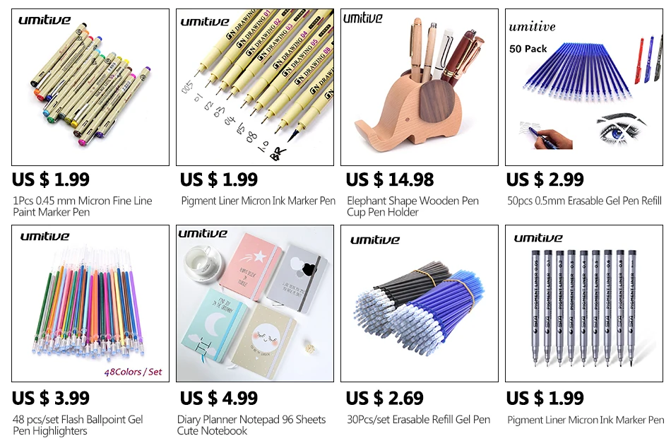 Umitive 1 шт. пигментная подкладка микрон чернила маркер ручка 0,05 0,1 0,2 0,3 0,4 0,5 0,6 0,8 мм различные наконечники черный для черчения манга ручки