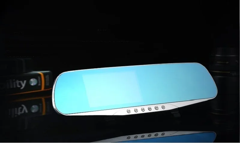 Автомобильный видеорегистратор, зеркало заднего вида с камерой заднего вида, 5 светодиодных ламп, серебристый бордюр, видеорегистратор с двойным объективом