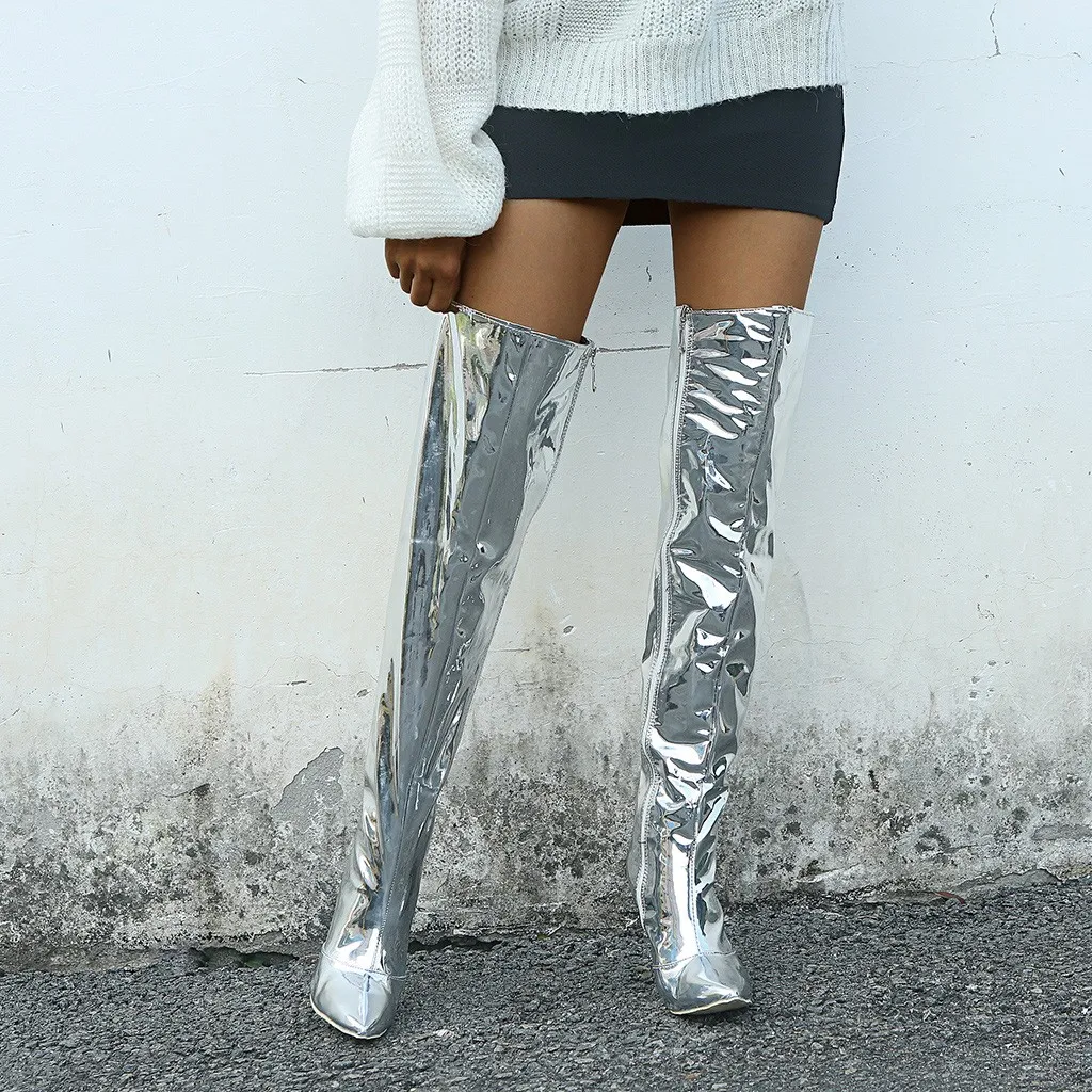 Женские модные однотонные ботфорты на молнии; Пикантные высокие сапоги; Повседневная обувь