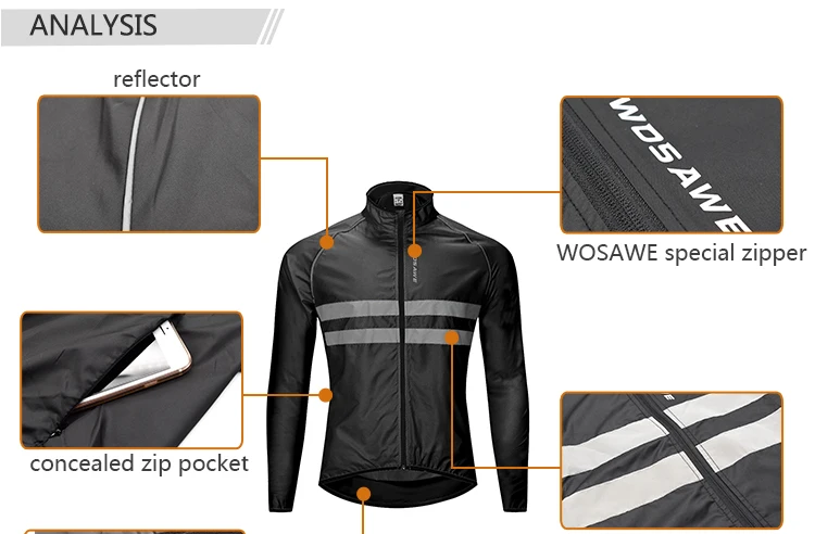 Он удерживает часть ветра, но обеспечивает достаточную воздухопроницаемость, чтобы хорошо проветривать и сушить; Он помогает избежать брызг или светильник большого дождя; светоотражающие полосы шириной 4 см обеспечивают безопасную езду на велосипеде и пробежки ночью.
