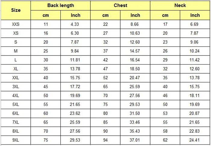 1. Окружность шеи (При измерении рекомендуется увеличить длину шеи животного на 1-2 см) 2. Обхват груди (Пожалуйста, измерьте самую широкую часть тела вашего питомца при измерении) 3. Окружность ноги (Измерение длины задней лап питомца) 4. Длина спинки (Измерьте расстояние от шеи животного до хвоста бедер)