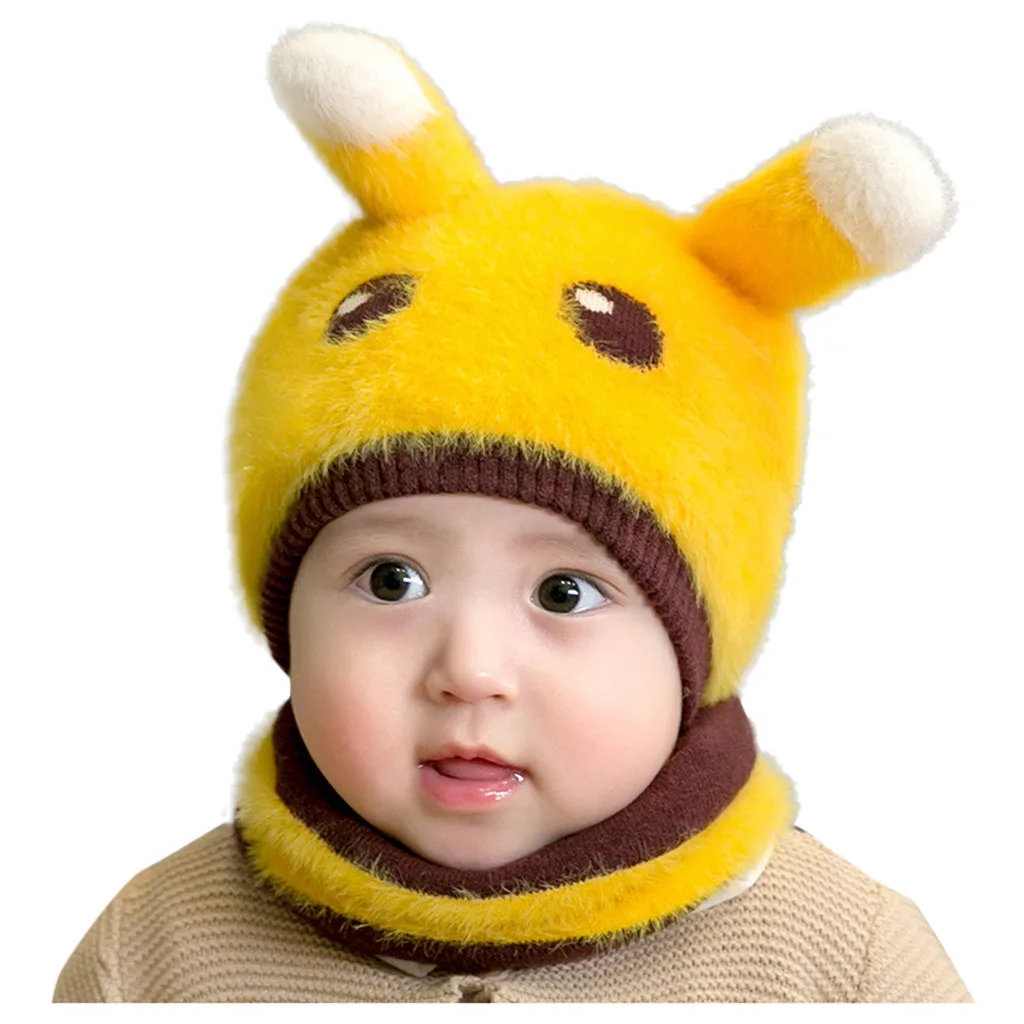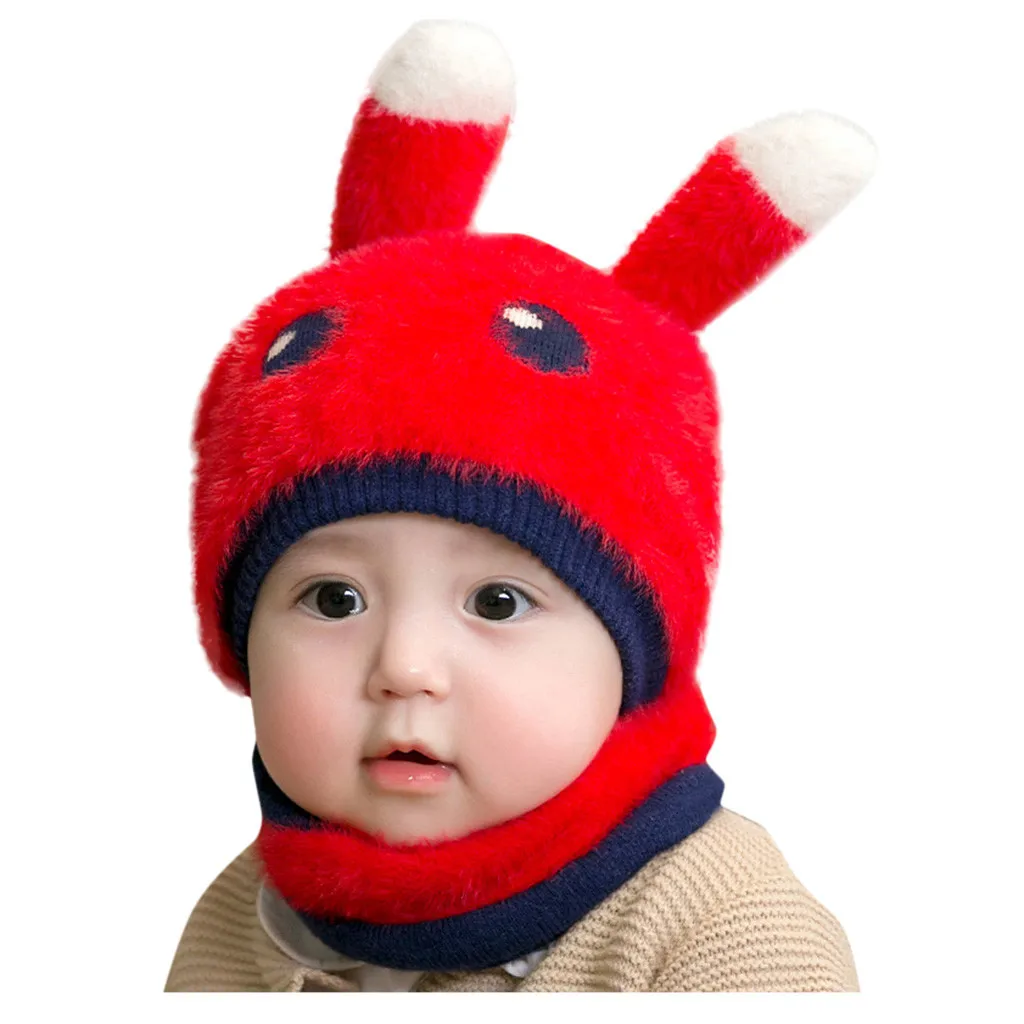 Детская милая мягкая шапка с заячьими ушками для мальчиков и девочек + шарф, комплект из двух предметов
