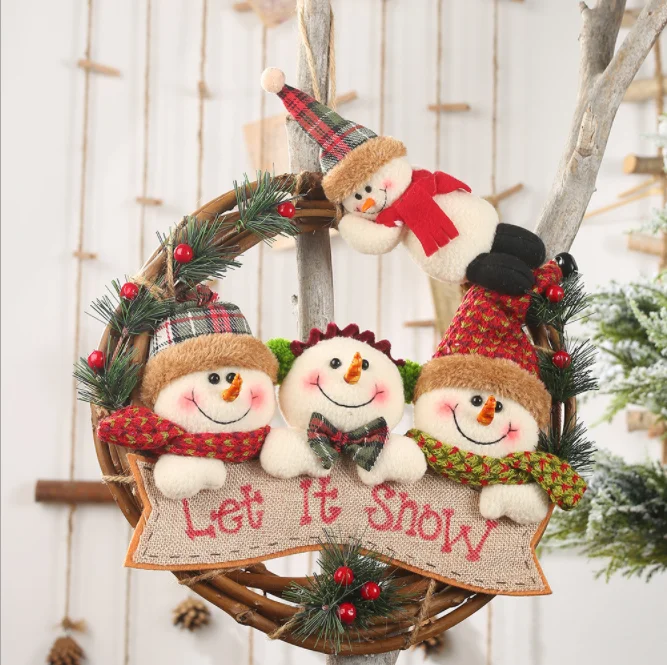 Рождественская елка украшения Санта Клаус снеговик лося ротанг круг подвесной ротанговый венок для дома Рождественские вечерние принадлежности JE