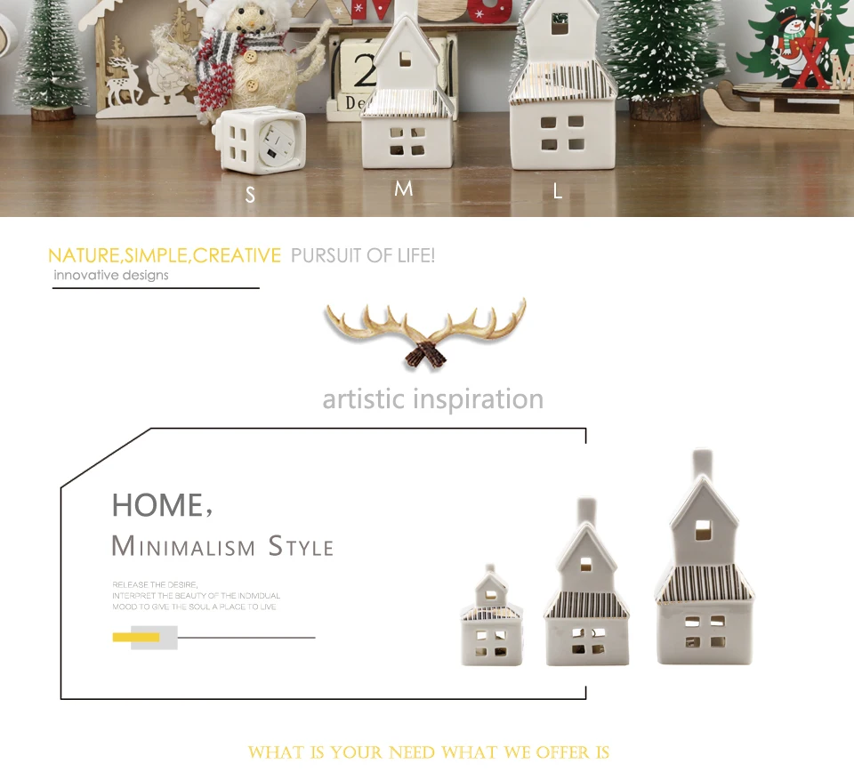 Мини-домик Миниатюрный кремовый белый керамический домашние статуэтки золотое покрытие украшение для дома украшение освещение скандинавский Снежный дом модель