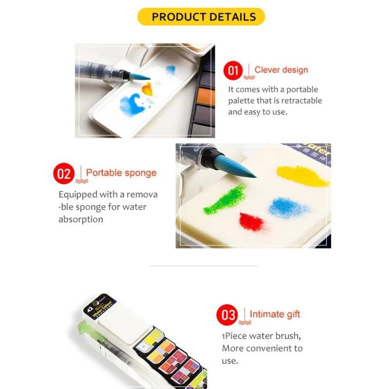 5. Встроенная цветовая палитра, кисть для письма с водой, впитывающая губка, подходит для начинающих.