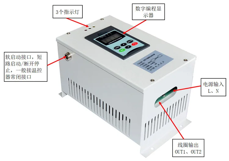 Основные характеристики обзор 1. Характеристики напряжения и мощности: 210 ~ 260 В постоянная выходная мощность; 2. Тепловая эффективность ≥ 95%; 3. IGBT температура защиты от перегрева: 85 ± 5 ℃; 4. Рабочая частота электромагнитного нагревателя: 5 ~ 40 кГц; 5. Промышленный высоконадежный AVR высокоскоростной вычислительный процессор, полумост серии резонанса; 6. Использование высоконадежной цифровой технологии управления циклом блокировки, цифровая бесступенчатая регулировка для достижения 20% ~ 100% регулируемой мощности, но также совместим с 0 ~ 5 В или 4 ~ 20 мА Аналоговый PID контроль выходной мощности; 7, с полной электрической изоляцией, мягкий интерфейс управления пуском (запуск/Отключение короткого замыкания), легко подключить с регулятором температуры; С 12 В/24 В Входной Пуск/стоп-режим управления интерфейсом, легко подключить с различными твердотельными реле (Ввод напряжения, в противном случае остановить нагрев, другое Примечание: При использовании этой функции, Мягкий интерфейс пуска должен быть пустым, и необходимо поставить короткую ссылку 8, с нагревательной катушкой короткого замыкания, функция защиты от открытого замыкания, 130% перегрузки и функция мгновенной защиты без нагрузки, мгновенное время отклика защиты ≤ 2uS; 9. Катушка имеет широкую совместимость и может быть совместима для замены того же типа продукции других компаний; 10. Сильная способность анти-помех, 30 контроллеров можно контролировать на том же нагревательном корпусе, чтобы начать/остановить одновременно без взаимных помех; 11, открытая Прикладная платформа, пользователи могут использовать специальный цифровой программный дисплей нашей компании для автоматического считывания тока, частоты, фазовых различий, температуры и других важных параметров, но также в соответствии с необходимостью установки различных параметров приложения, чтобы установка и отладка были более простыми и удобными; 12. 1 ~ 255 рабочих дней может быть установлен. Он будет автоматически закрыт после завершения сроков. 13. Принимает промышленные компоненты, 100% из которых прошли высокотемпературный тест на старение, чтобы обеспечить непрерывную и надежную работу в промышленной среде при 50 ℃ в течение длительного времени, со средним сроком службы без проблем ≥ 50000 часов; 14. Заводское стандартное оборудование: встроенная панель управления, радиатор и вентилятор охлаждения, оснащенный чехол и цифровым дисплеем программирования; 15. Физический размер контроллера: длина 220 мм * ширина 130 мм * Высота 140 мм (включая чехол);