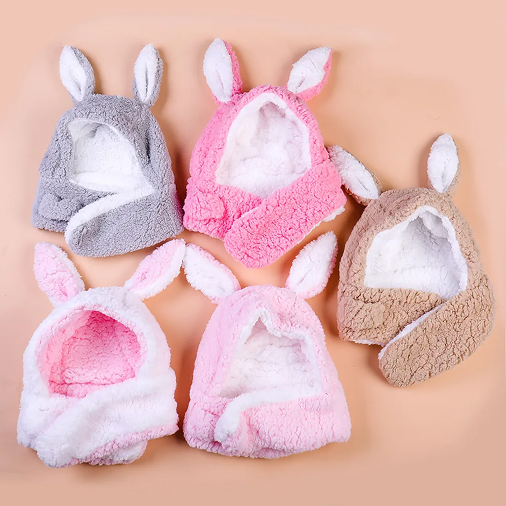 Регулируемый Детский плотный шарф для маленьких девочек, вязаная шапка с ушами, защищающие лицо шапки с горловиной, шапки
