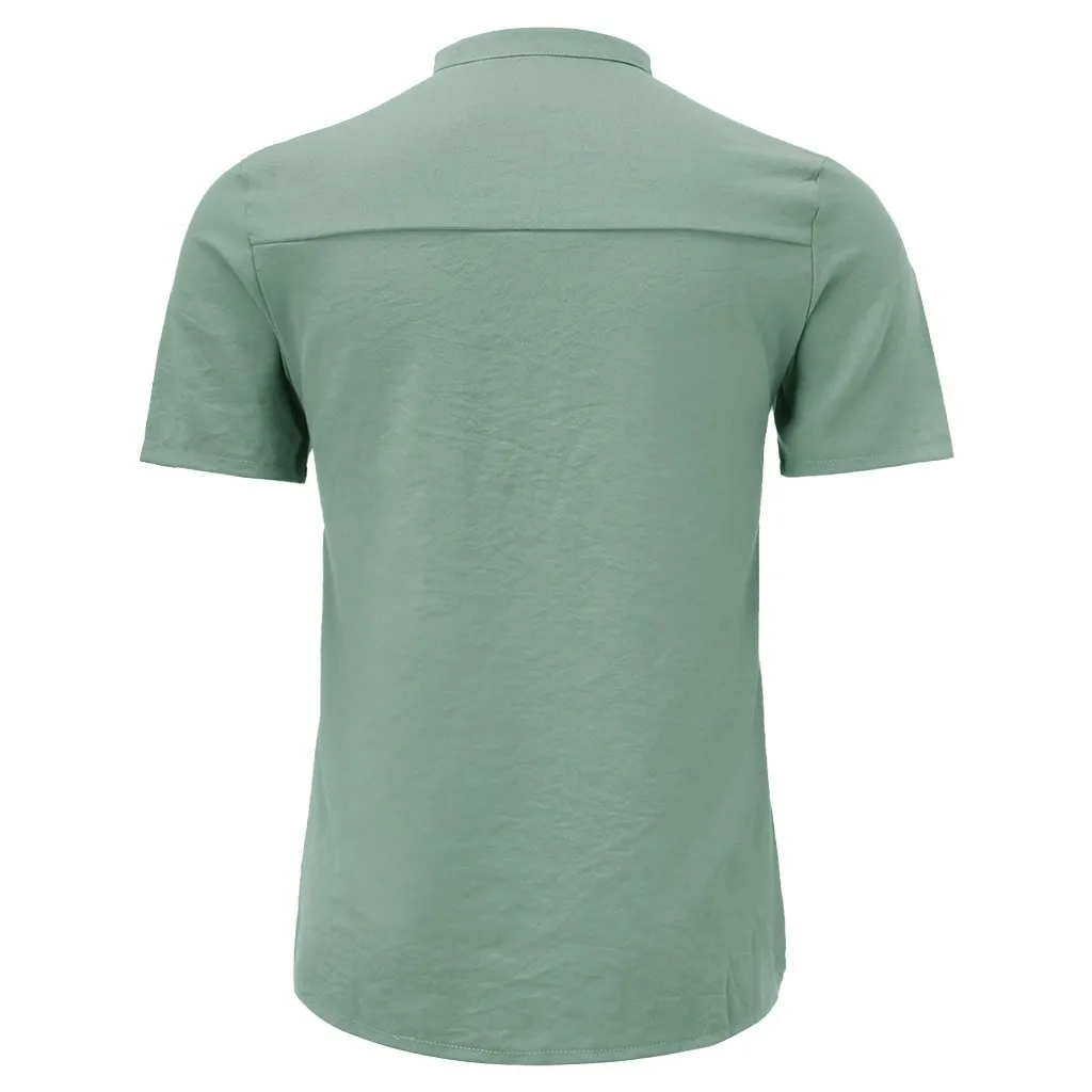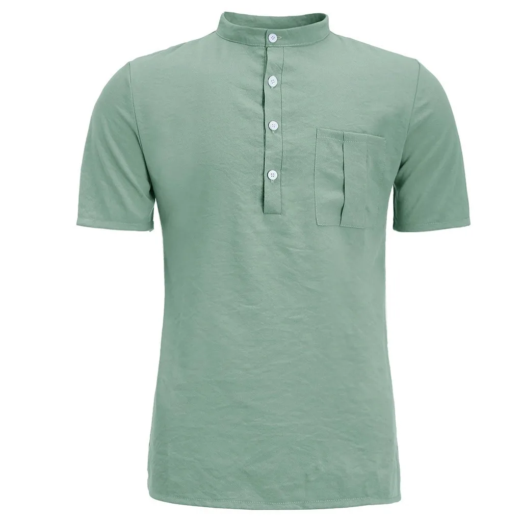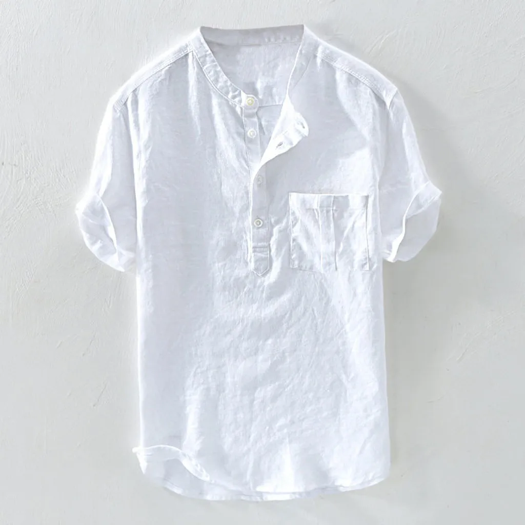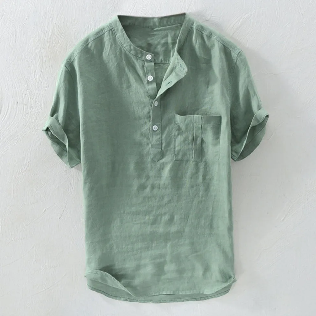 Мужская летняя новая Большая блузка из чистого хлопка с пеньковой пуговицей и короткими рукавами, модный топ