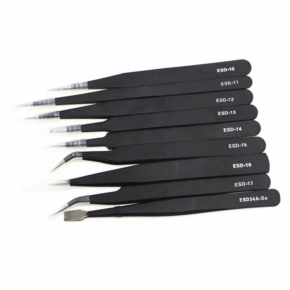 9 шт. набор антистатических прецизионных пинцетов из нержавеющей стали для электронных часов, ювелирные изделия, мобильный телефон, набор инструментов для ремонта