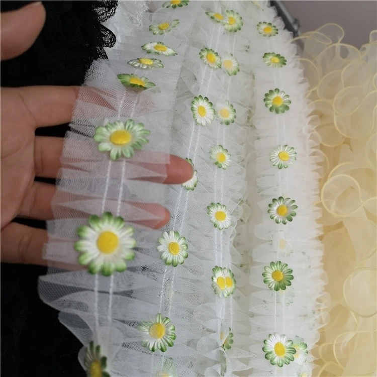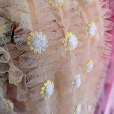 Наименование товара: полученное тонкое сморщенное кружево с аппликацией в виде подсолнуха
