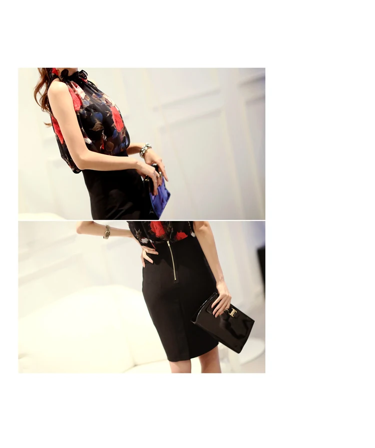 Высококачественная Корейская Элегантная блузка без рукавов с лямкой на шее, летняя Офисная Рабочая одежда, топы, блузка, сексуальная шифоновая блузка с принтом