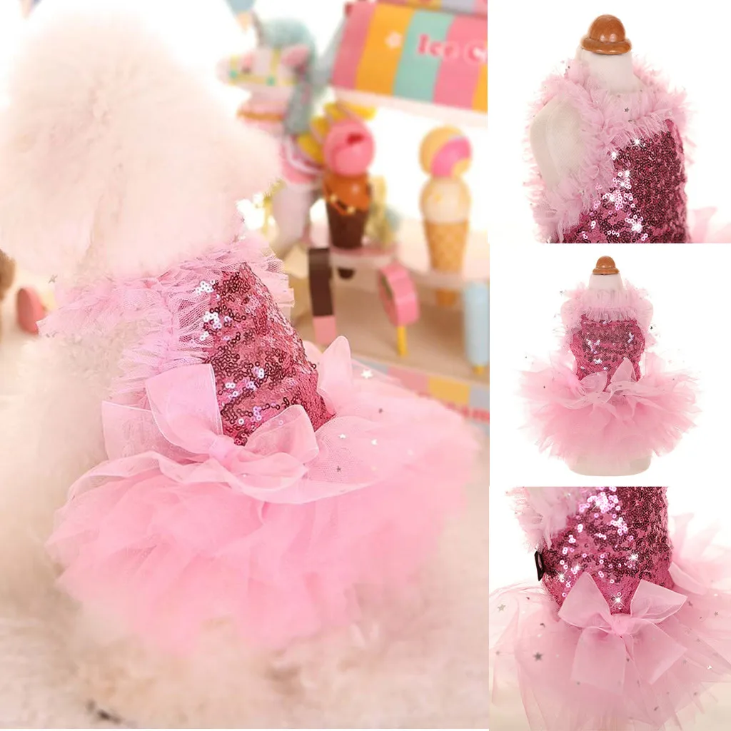 Clothes For Pets,Princess skirt With Stuffed Puppy Print For Pets with Lace