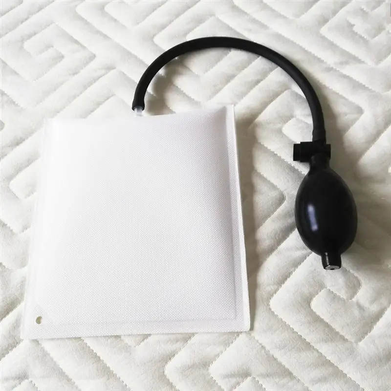 - Quickly inflatable air wedge for window, door stopper or spacer installations, replaces the need for wooden shims and plastic wedges.