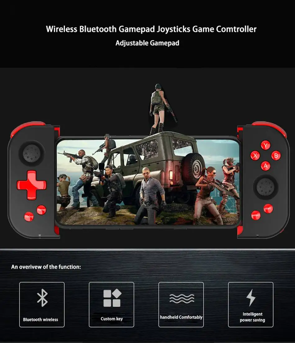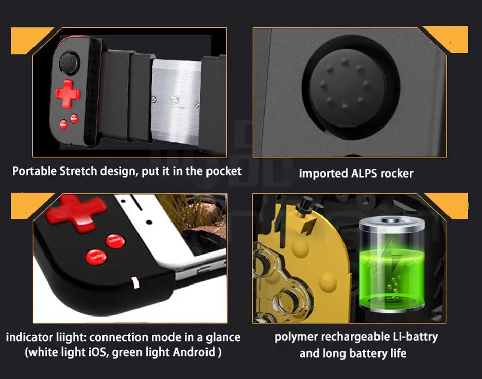 Bluetooth-Совместимость напрямую: Поддержка Android / iOS прямой игры Elite мир/стимулирование battlefield / King for GLORY/штурм всей армии/бесконечная битва и другие официальные пресс-игры на экране, В сочетании с плеерами на мобильный телефон, поддерживает Кнопку изменения приложения