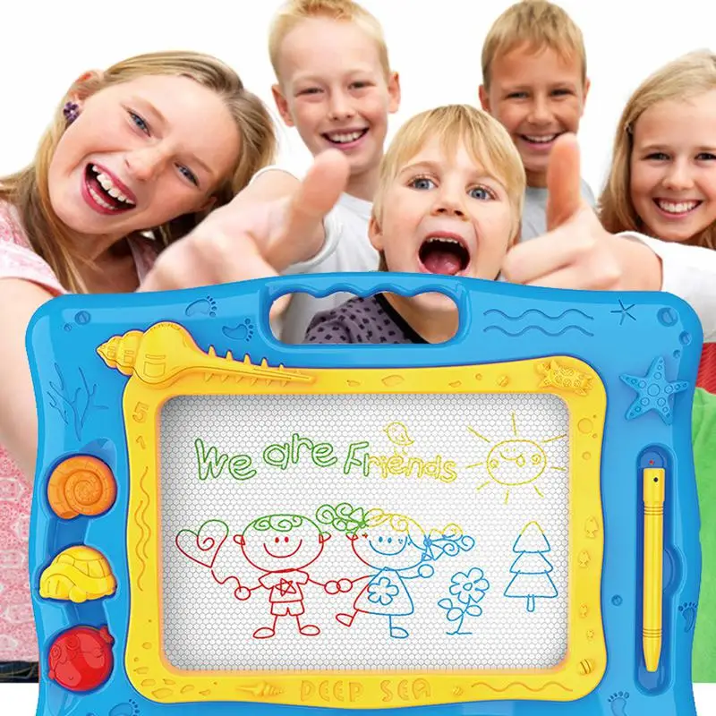 【OCEAN THEME】: The magnetic drawing board shows 4 kinds of marine life - starfish, sea snails, shells, sea fish. Easy-to-use sea animal stamper and oversized magnetic drawing screen, four-color quadrant, makes the little guy's paintings colorful.