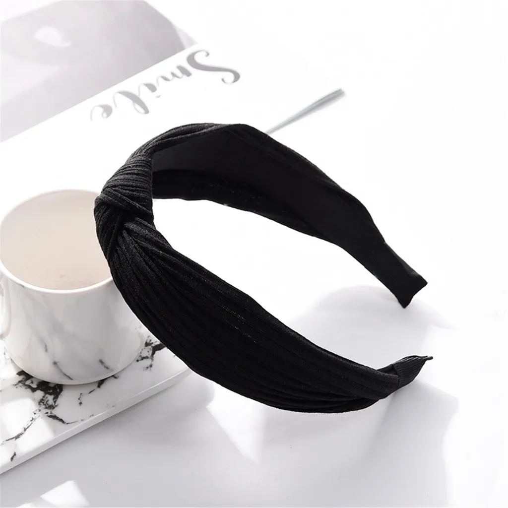 Женская однотонная простая модная повязка на голову, тканевая повязка на голову