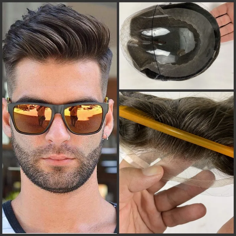 Alishevy, человеческие волосы для мужчин, Q6 основа, искусственная и французская кружевная шапочка, волосы Remy, отбеленные узлы, мужские парики, шиньоны, замена мужчин.