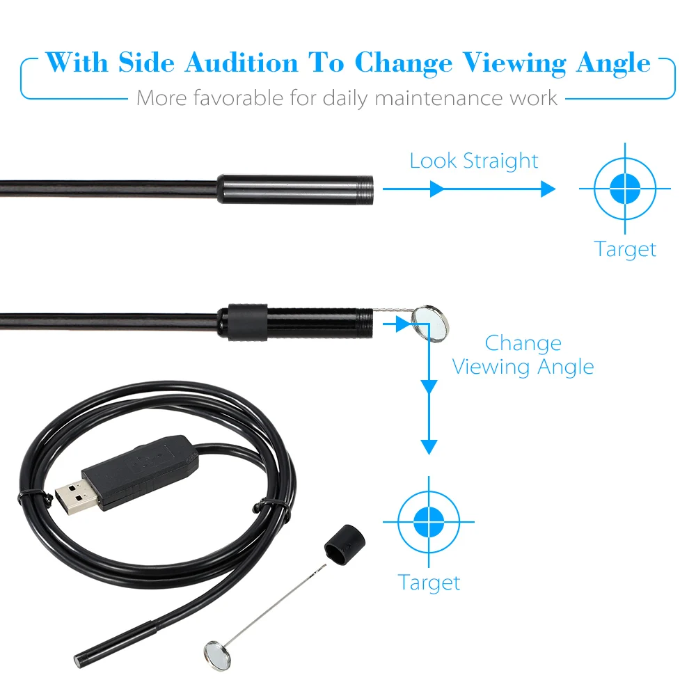 * 0,3 мегапикселя 7 мм объектив камеры обеспечивает высокое разрешение изображения, 6 крошечных Белый светодиодный, которые настраиваются от Выкл до полной яркости для тех темных мест, в которые вы хотите смотреть.