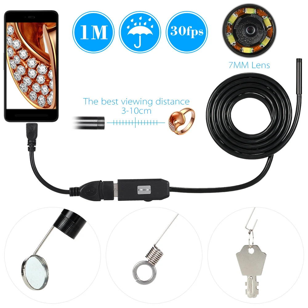 Автомобильный диагностический сканер инструмент Android OTG USB эндоскоп инспекционный Бороскоп 5 м 2 м 1 м 6 светодиодный объектив 7 мм USB провод змеиная трубка камера