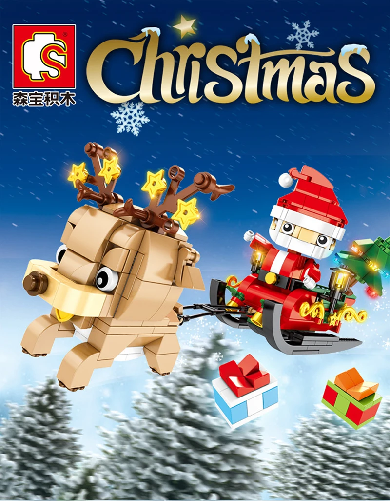 Совместимые сани Санта-Клауса, северный олень, строительные блоки, веселые рождественские тематические кирпичи, игрушки, подарок