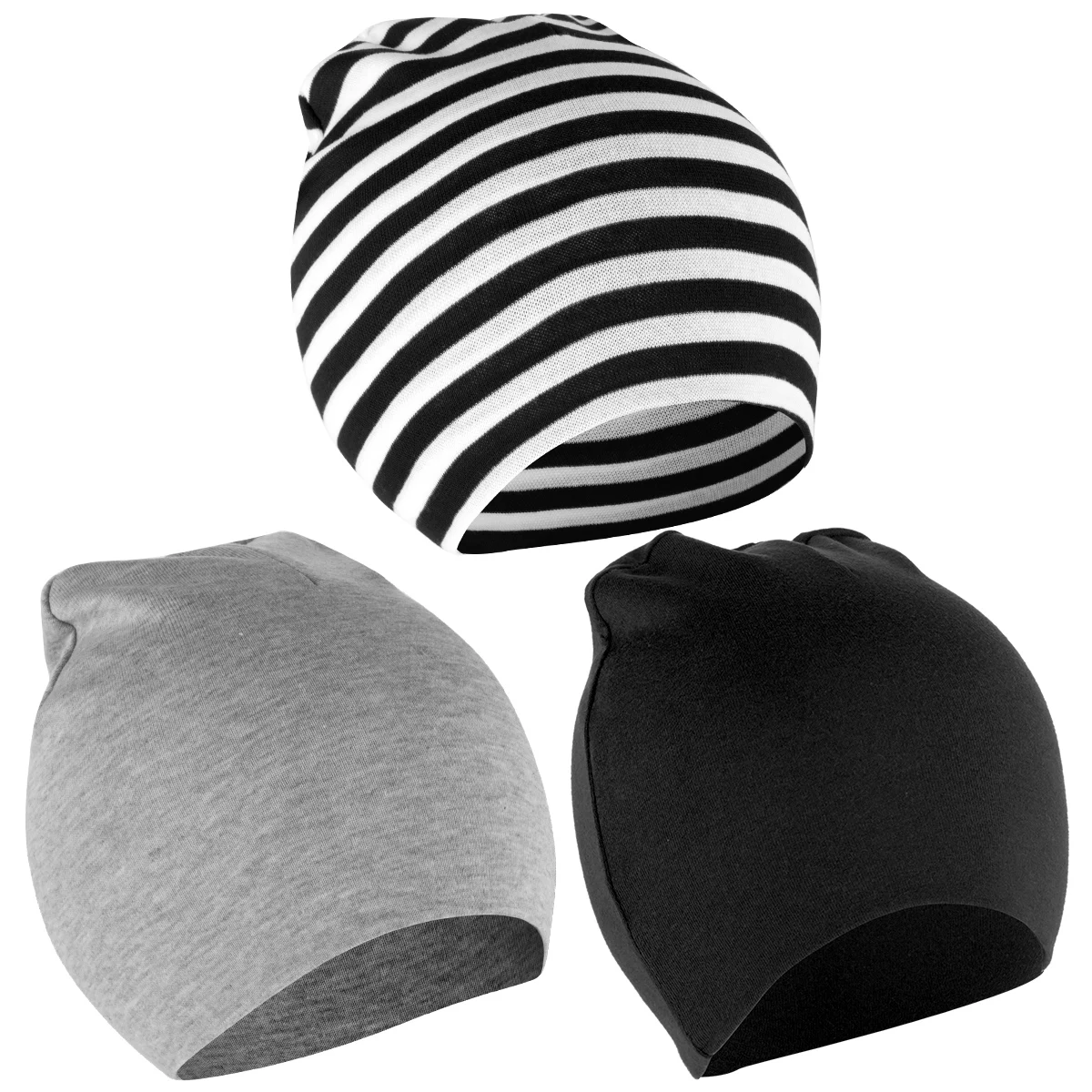 Детская шапка-бини из хлопка, двухслойные кепки с полосками для маленьких мальчиков и девочек, весенне-осенние детские шапки