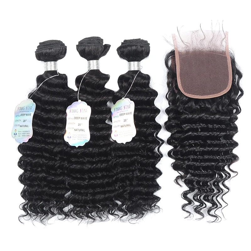Shiningstar глубокая волна пряди с закрытием перуанские волосы пряди с закрытием предварительно выщипанные с детскими волосами Remy человеческие волосы пряди