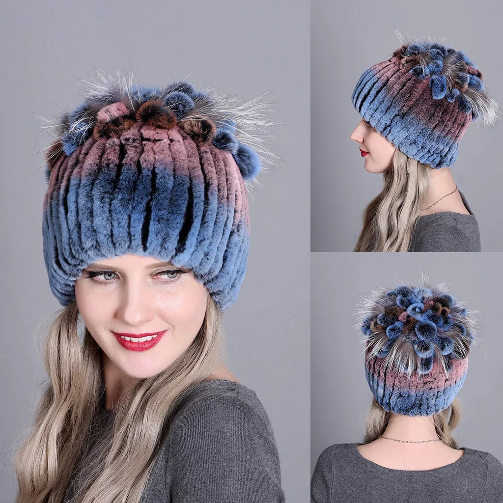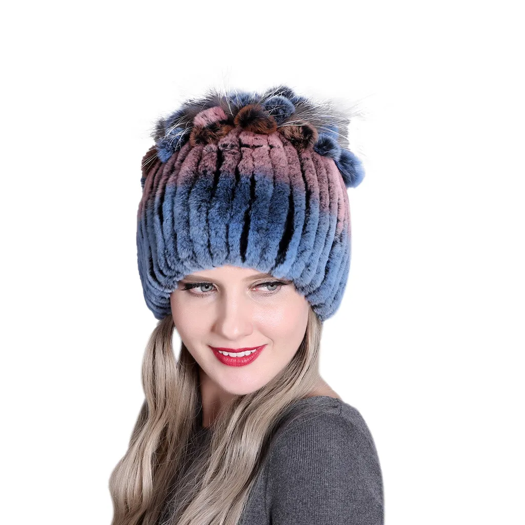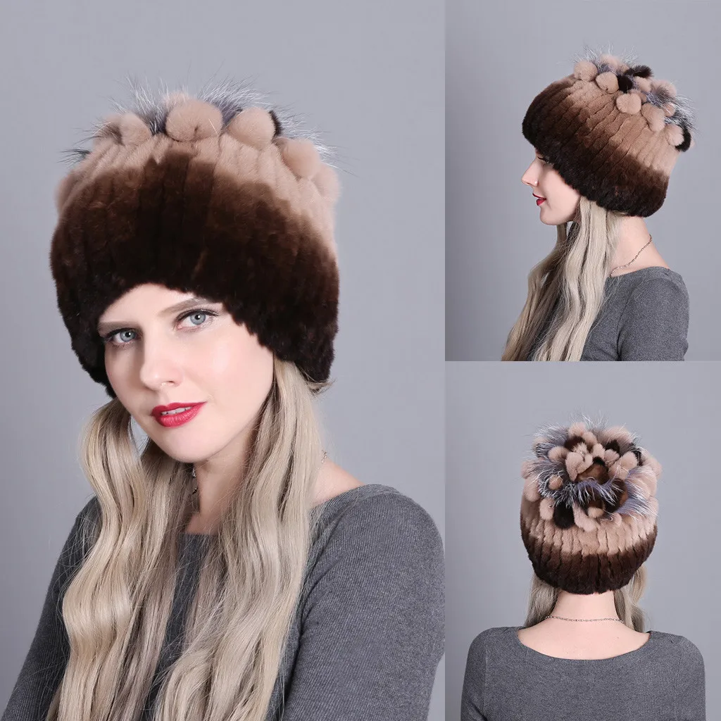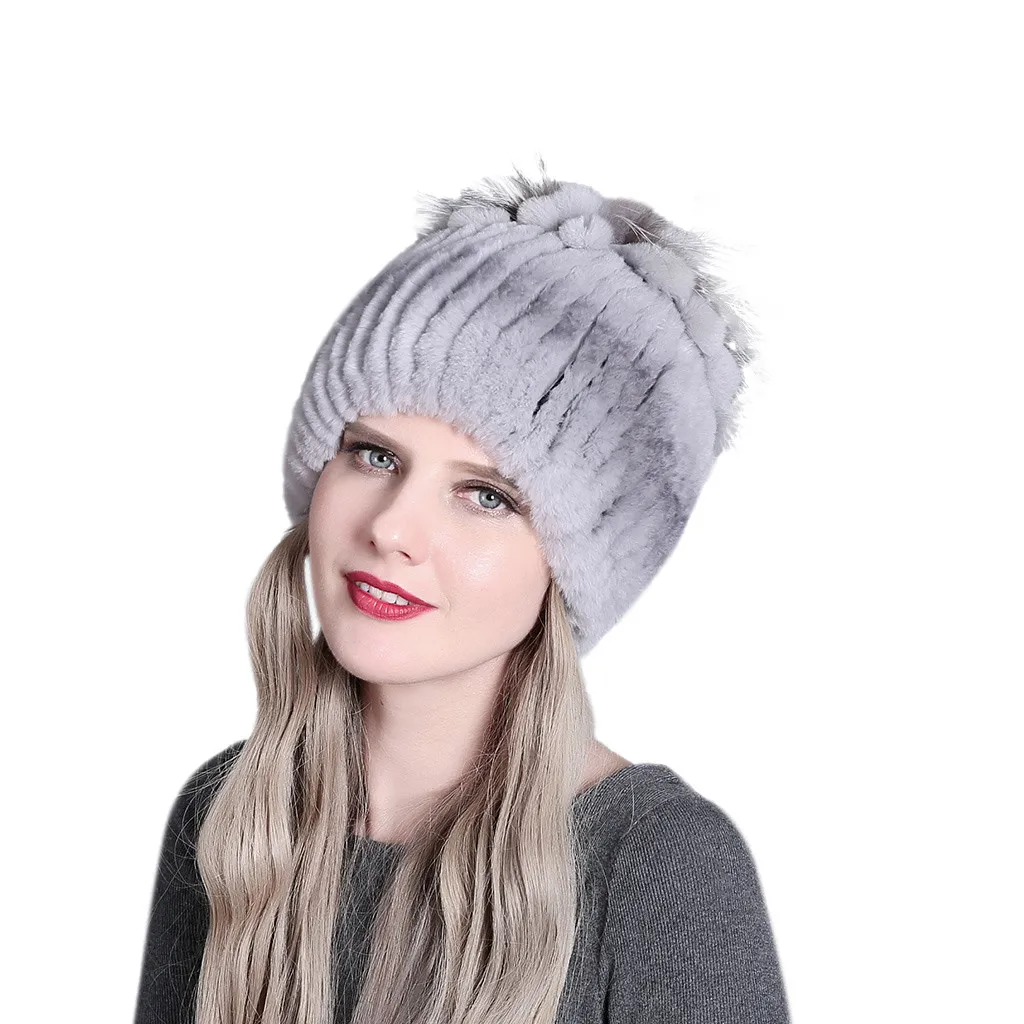 Женская зимняя шапка женская для женщин из меха кролика и лисы шапки Рекс женские