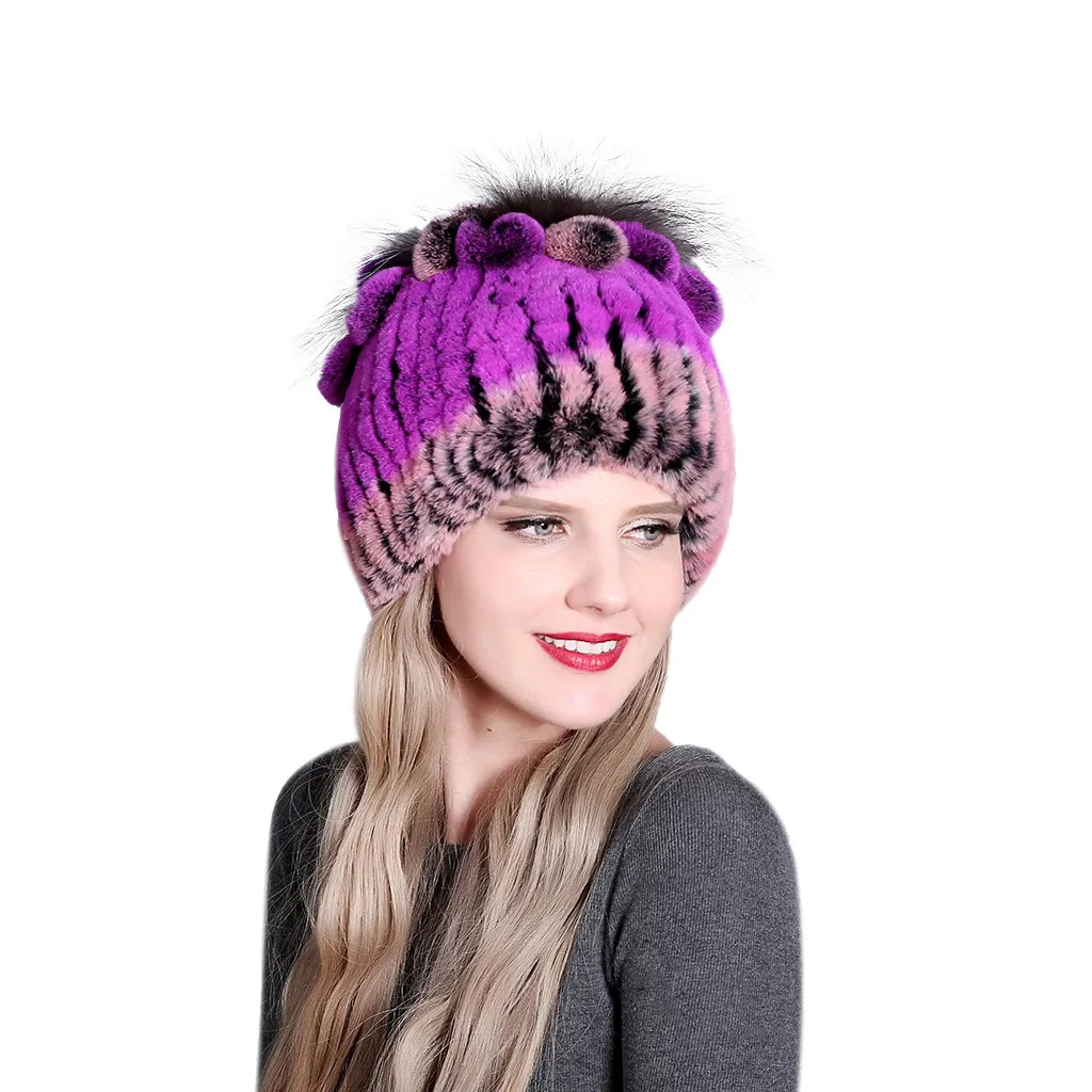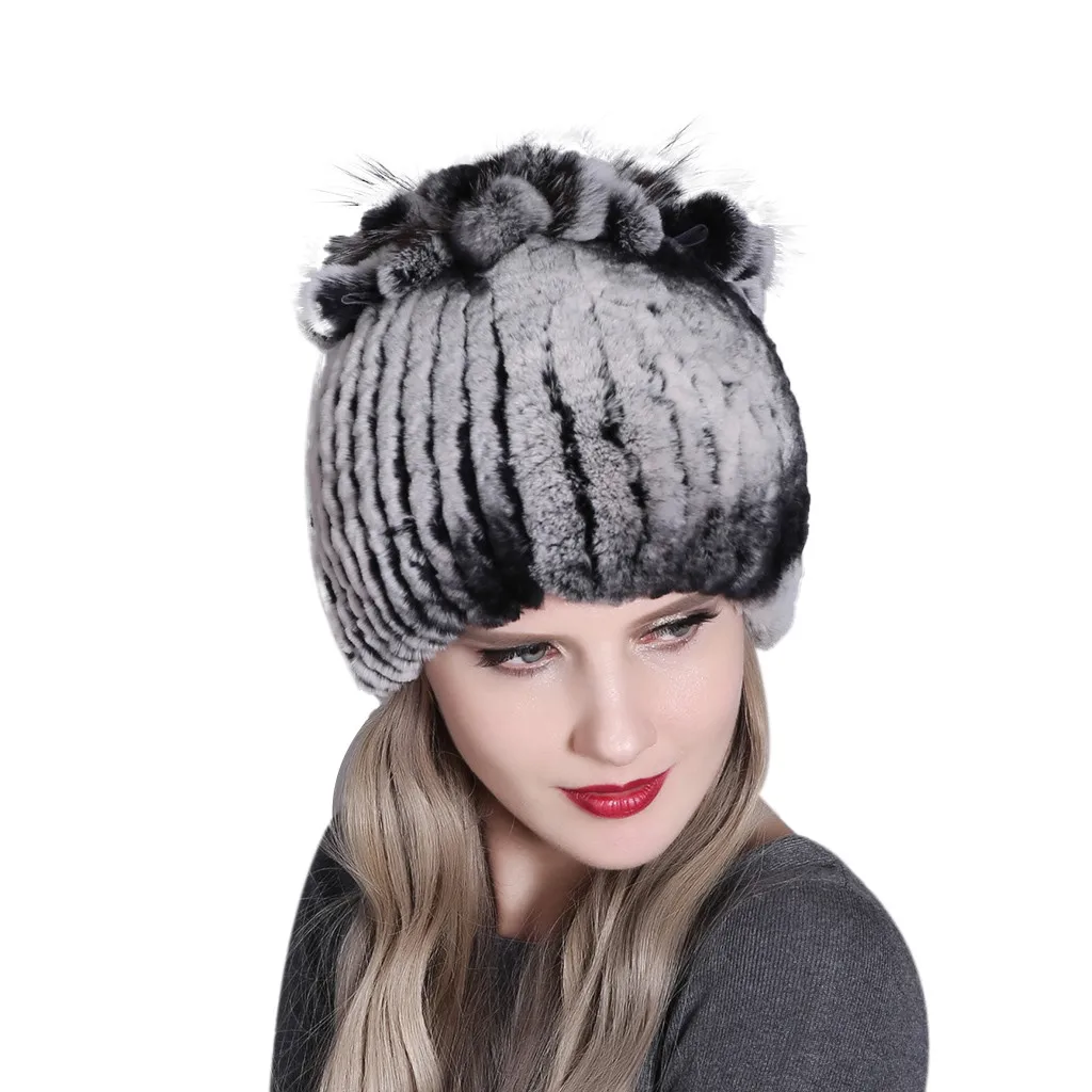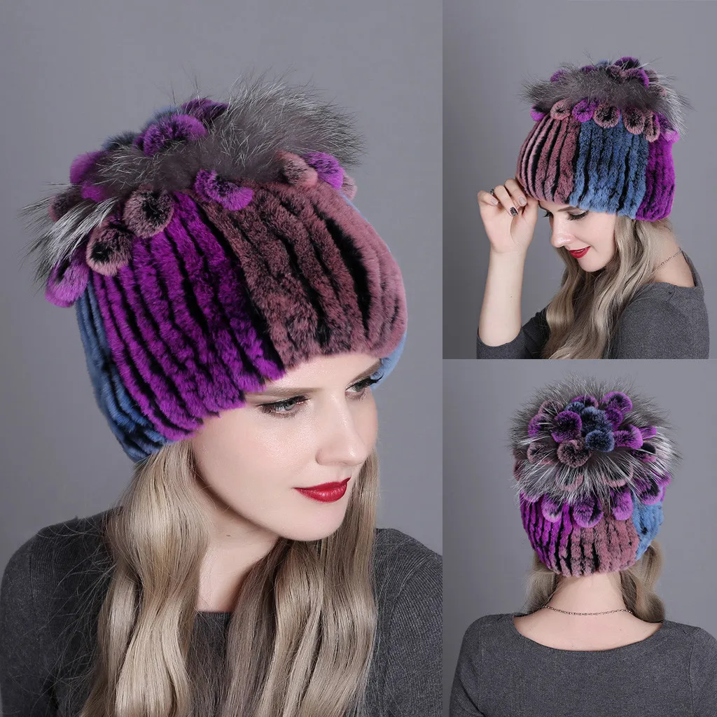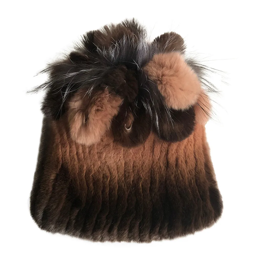 Женская зимняя шапка женская для женщин из меха кролика и лисы шапки Рекс женские