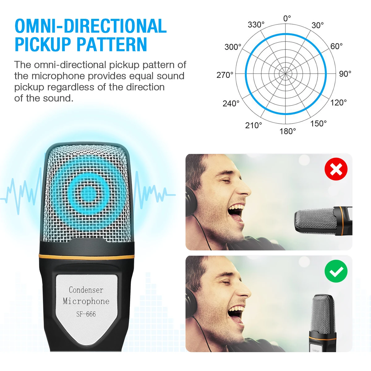 ►Всенаправленный Полярный узор: можно собирать звуки во всех направлениях, легко записывать. (для предотвращения помех, пожалуйста, держите окружающую среду в тишине.)