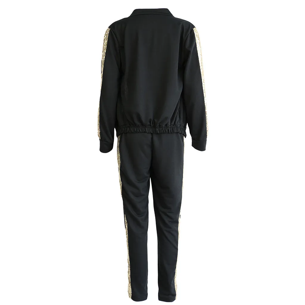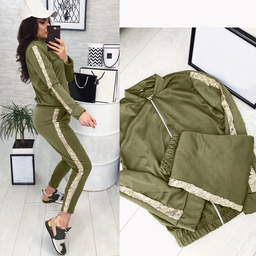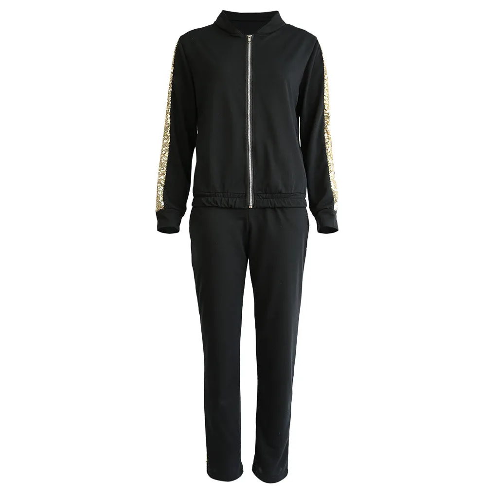 Осенняя Новая модная повседневная куртка с блестками, брюки, спортивный костюм для женщин