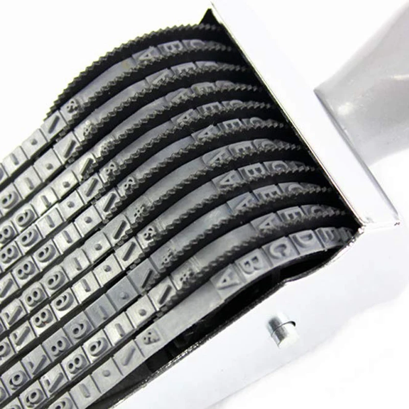 Каждый ремень 0-9 (10 цифр),A-Z (26 букв) и + -. X / # @ пространства, каждый ремень может свободно вращать различные цифры, буквы, пунктуации.