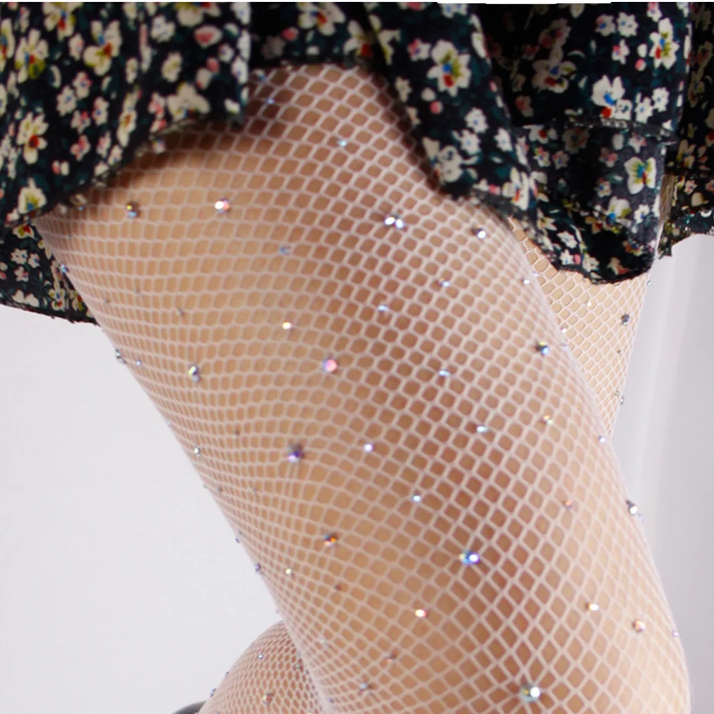 Женские блестящие туфли с украшением в виде кристаллов Стразы ажурные чулки в крупную сеточку колготки в сеточку с бриллиантовыми стразами пикантные, блестящие колготки для малышек для танцев в ночном клубе вечерние!