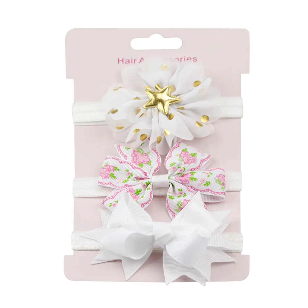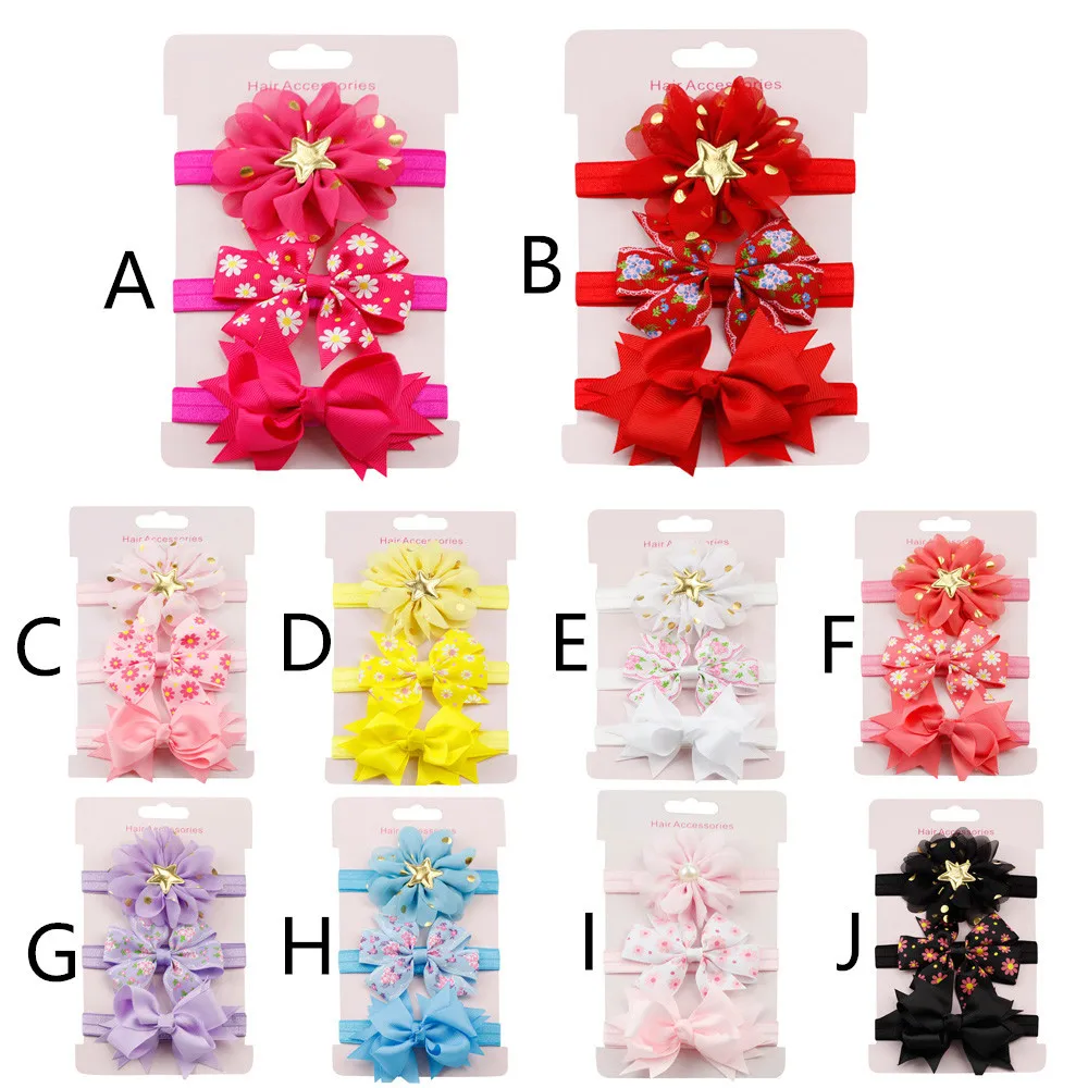 3 шт.; Эластичная повязка на голову с цветочным рисунком для маленьких девочекС бантомНабор для волос