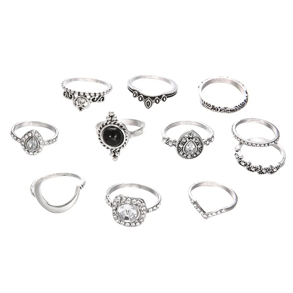 Набор 10 колец-вы можете носить их в любом случае, и это заставляет вас выглядеть эффектно Винтажное богемное кольцо для ногтей в форме костяшек.