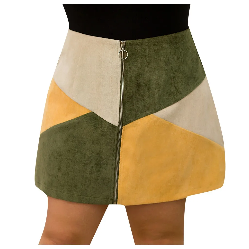 Женская юбка юбки faldas jupe femme saia harajuku Осенняя мода размера плюс Трехцветная прошитая мини-юбка на молнии