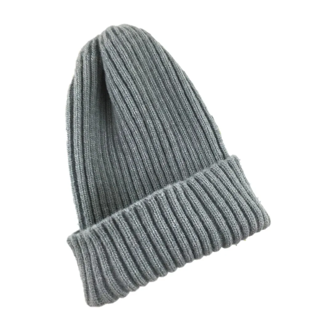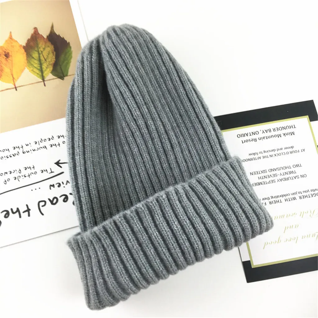 Зимняя однотонная шерстяная вязаная детская шапка, Женская Повседневная теплая шапка