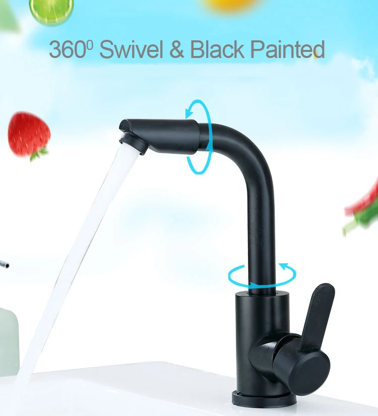 Bathroom Basin Sink Black Torneira 360 Degree Swivel Faucets SUS304 Stainless Steel Hot Cold Water Mixer Tap Ceramic Spool Grifo