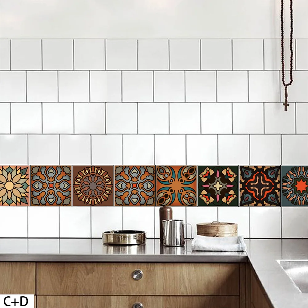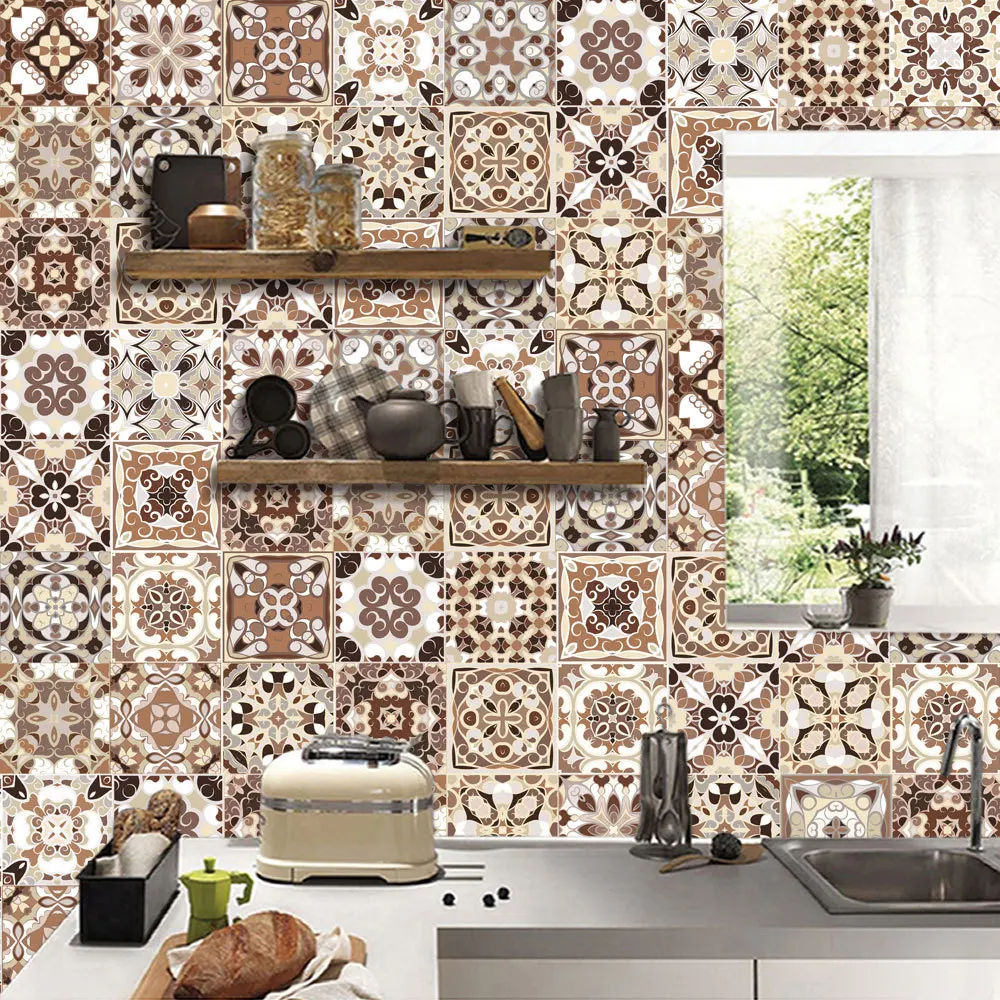 20*100cm Moroccan Style Tile Wall Sticker PVC Bathroom Kitchen Waterproof Wallpaper Home Decor DIY Self-adhesive Art Mural Decal