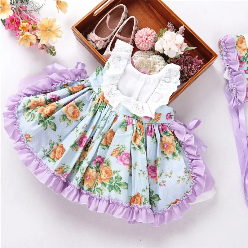 Винтажное платье с длинным рукавом для маленьких девочек, кружевное платье принцессы с клубничным рисунком, испанская одежда, бутики, милые детские платья | ||