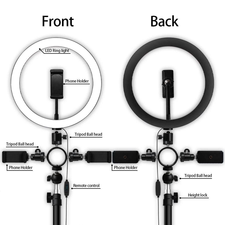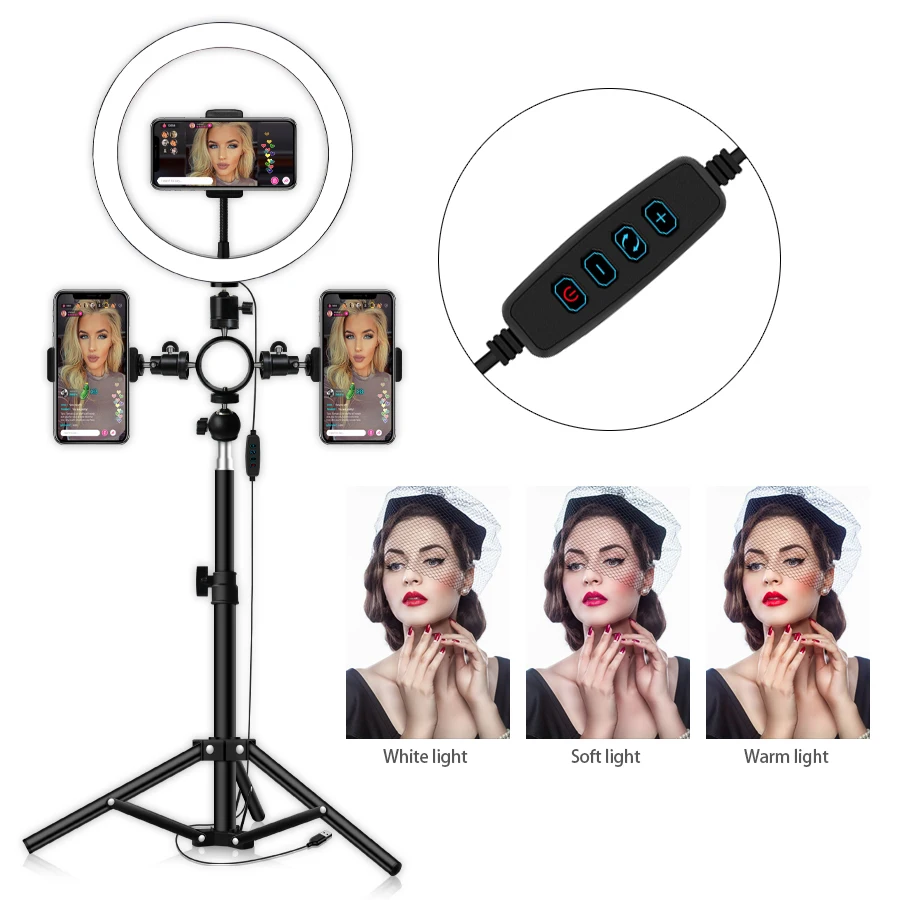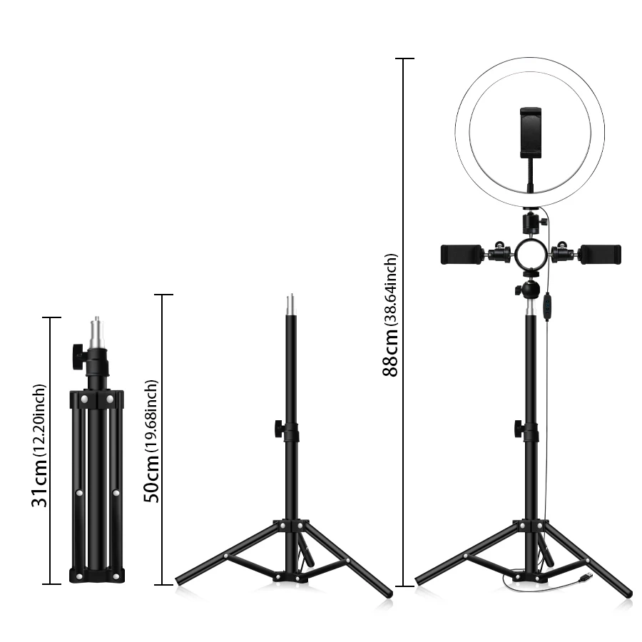 Красивый кольцевой светильник + многофункциональная головка G6 + держатель для мобильного телефона 2 маленьких каркаса + Железная головка G5 + зажим для мобильного телефона с двойным отверстием 2 + светильник для красоты 50 см
