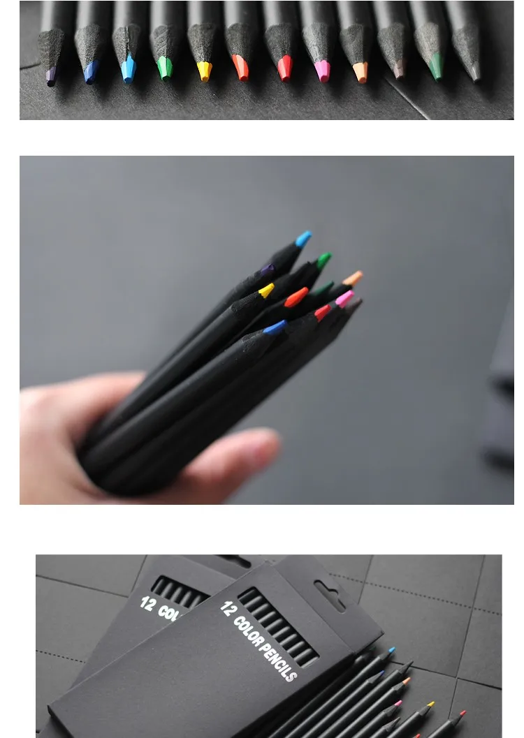12 шт./компл. Набор цветных карандашей для рисования студентов роскошный черный деревянный профессиональный цветной карандаш для рисования школьные художественные канцелярские принадлежности