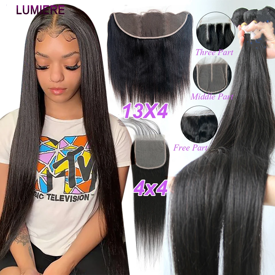 30 32 38 40 дюймов прямые пряди с закрытием бразильские волосы плетение пряди с фронтальной застежкой 100% Remy волосы для наращивания