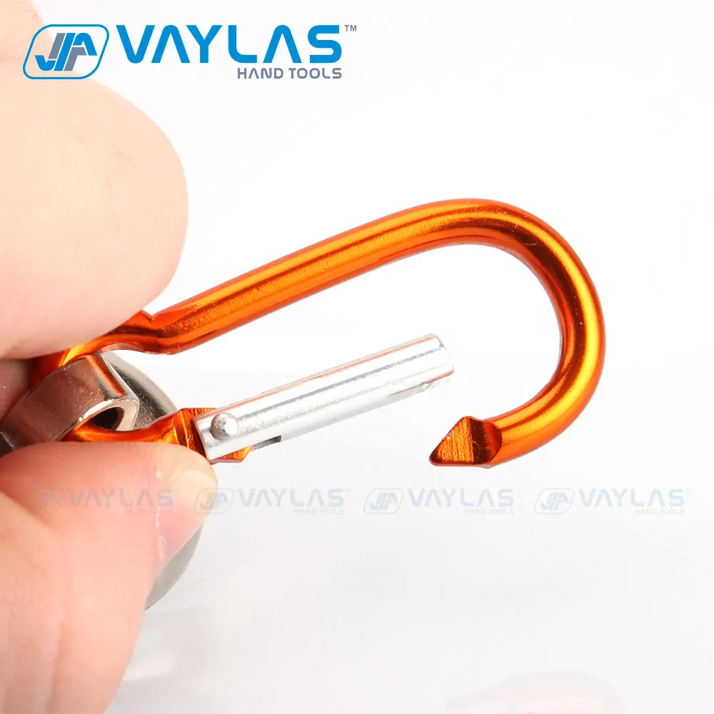 Он оснащен пружинным затвором, который позволяет быстро и надежно крепиться к широкому диапазону фиксирующих точек. Он может открываться и закрываться плавно, так как Пружинные ворота позволяют легко прикрепить важные предметы к упаковке или поясу, идеально подходят для подвесных шнуров, канатов, шлангов, ключей и других предметов.