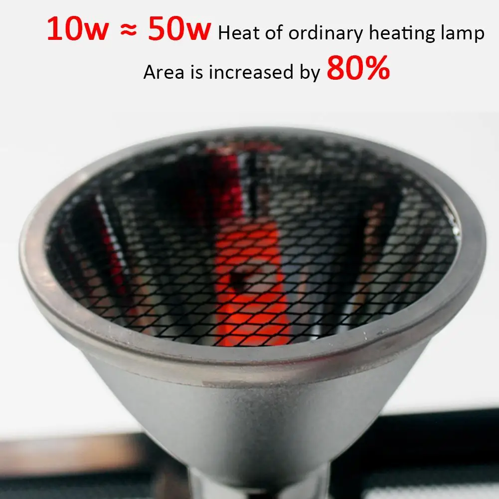 1,10 Вт = 50 Вт количество тепла обычной нагревательной лампы: вам нужна Сонная нагревательная лампа. Наша нагревательная лампа имеет специальное отражение внутри, площадь рассеивания тепла увеличивается на 80%. Он обладает высокой эффективностью и низким энергопотреблением и обеспечивает достаточную температурную поддержку.