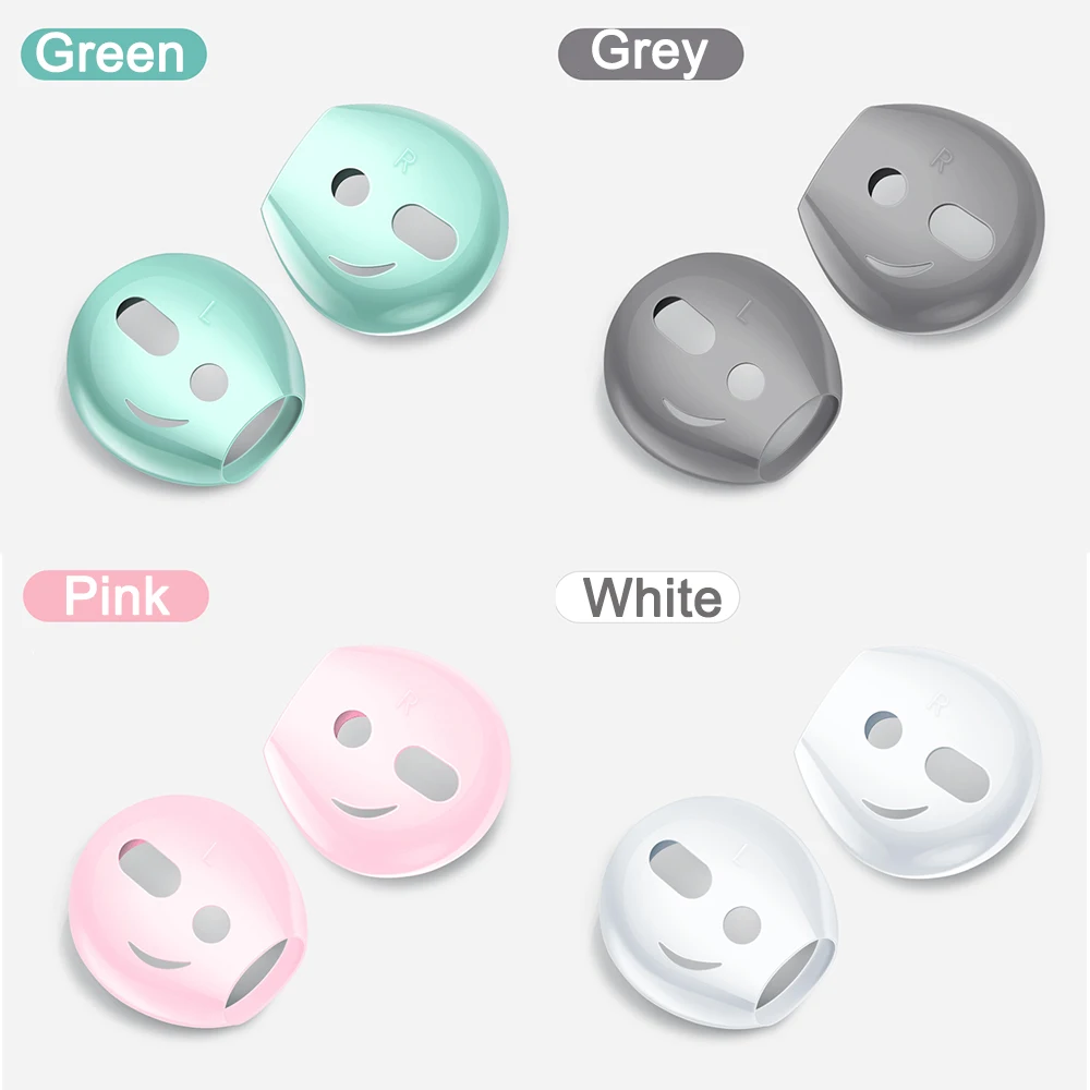 100% новый товар высокого качества. 1. Материал: силикон 2. Цвет: белый/розовый/зеленый/серый 3. Совместимые модели: для Airpods 1/2 4. Список: наушники * 2 пары 5. Посылка включает в себя: 6,2 пар силиконовый чехол (Apple AirPods или EarPods не включены.)